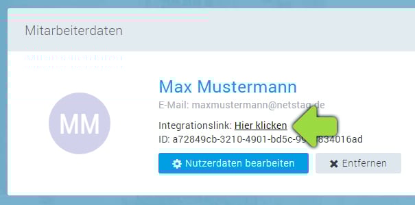 Öffnen Sie das Mitarbeiterprofil des entsprechenden Mitarbeiters und klicken Sie auf den Integrationslink, oder...