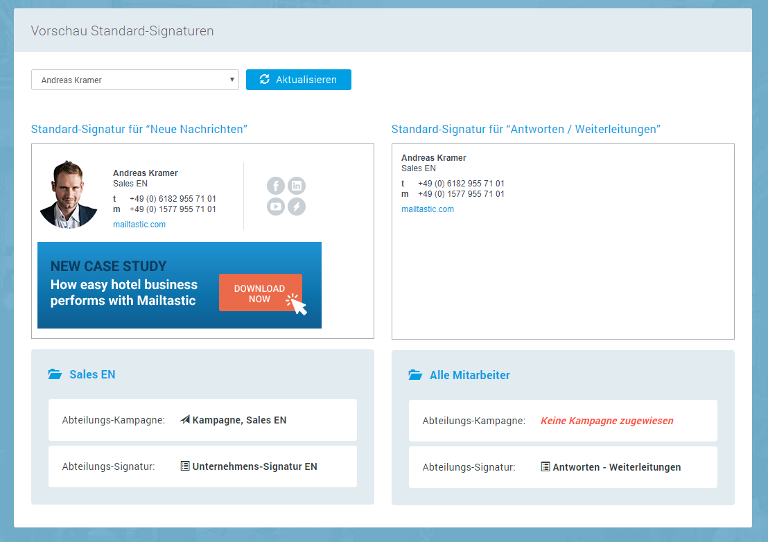 In der Standard-Signatur-Vorschau können Sie die Einstellungen für Ihre Mitarbeiter jederzeit überprüfen: