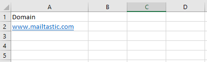 Ihre CSV-Datei muss mindestens die Account-Domain ( z.b. www.mailtastic.com ) enthalten.