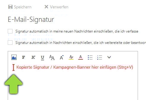 Sofern Sie einen Kampagnen-Banner zugeordent bekommen haben, fügen Sie diesen mit einem Absatz Abstand unter den bestehenden Signatur-Text ein.