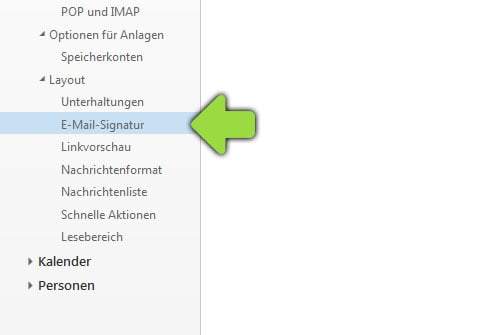 ... und wählen Sie dann in der linken Spalte "E-Mail-Signatur" aus.