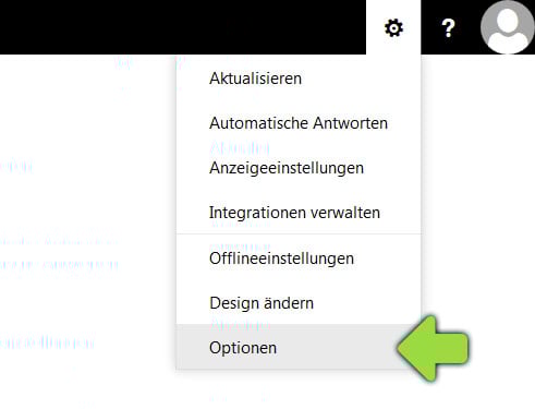Navigieren Sie über das Zahnrad in der oberen rechten Ecke zu "Optionen" ...