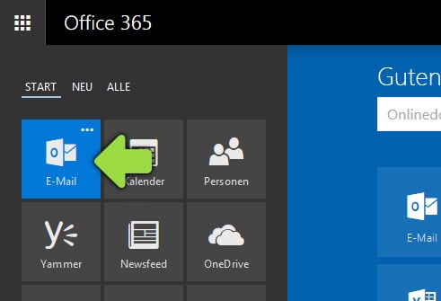 Öffnen Sie Office 365 und wählen Sie "E-Mail" aus.