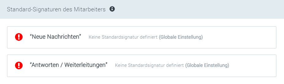 2)Im Profil des Mitarbeiters können Sie unter "Standardsignaturen des Mitarbeiters" zwischen "globalen" und "individuellen" Einstellungen wählen.