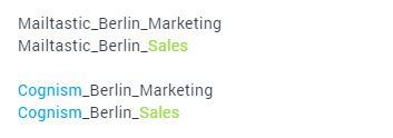 Daraus ergeben sich folgende Mailtastic-Abteilungen: