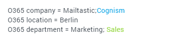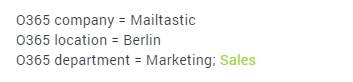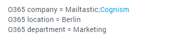 Insbesondere gehen wir auf Fälle ein, in denen eine Office 365-Nutzerinformation mehr als einen Wert beinhaltet, die durch einen Trenner wie z.B. ";" getrennt sind.