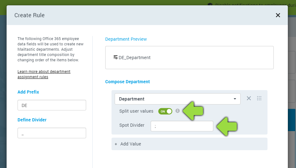 Fall 2 - O365-Datenfeld "Abteilung" beinhaltet zwei Werte: