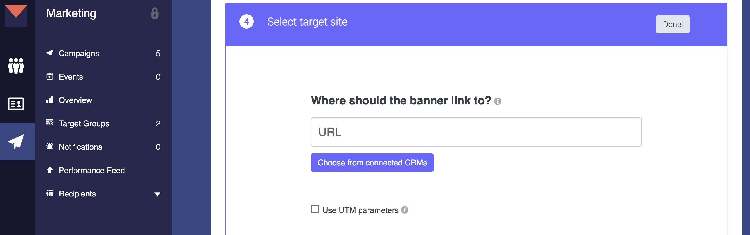 Anstatt eine komplexe URL einzugeben, können Sie beim Erstellen einer empfängerbasierten Kampagne in Mailtastic direkt eine bestehenden Marketo Landingpages als Ziel des Kampagnenbanners auswählen.