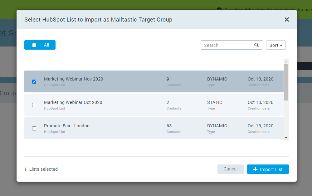 Sie können Marketo-Kontakte nach Mailtastic importieren, indem Sie Marketo-Kontaktlisten als Mailtastic-Zielgruppe importieren.