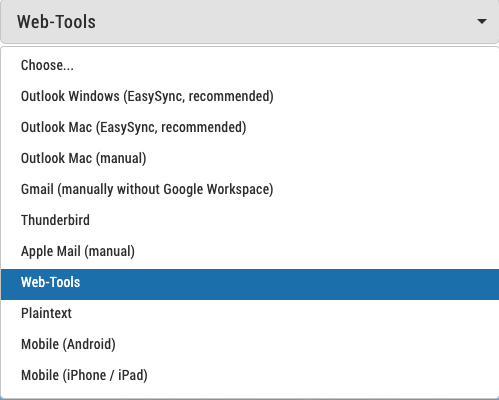 Follow the process until you reach the "Instructions" area. Scroll down until you reach "Integration Guide" and select "Web-Tools" from the drop-down menu.