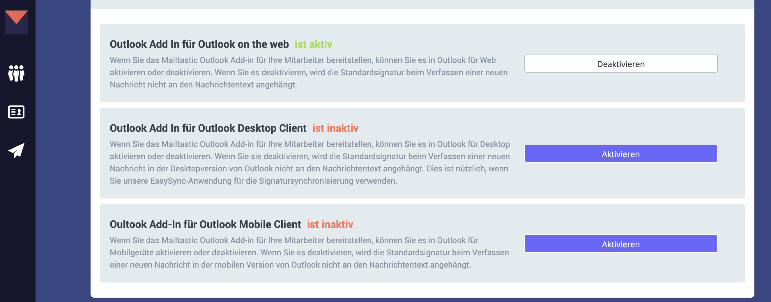 Danach werden alle Benutzer in der Lage sein, Signaturen und Kampagnen über das Outlook AddIn auf ihren mobilen Geräten anzuhängen. Es ist nicht notwendig, etwas in der Mailtastic App zu konfigurieren, da die Einrichtung für Ihre Signaturen und Kampagnen auf dem Desktop genau die gleiche Konfiguration auf dem Mobilgerät verwenden wird.