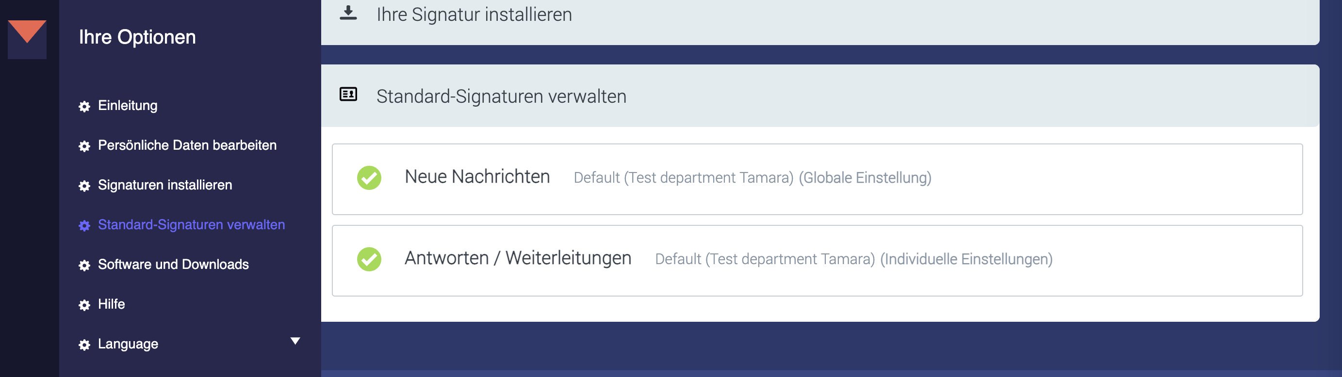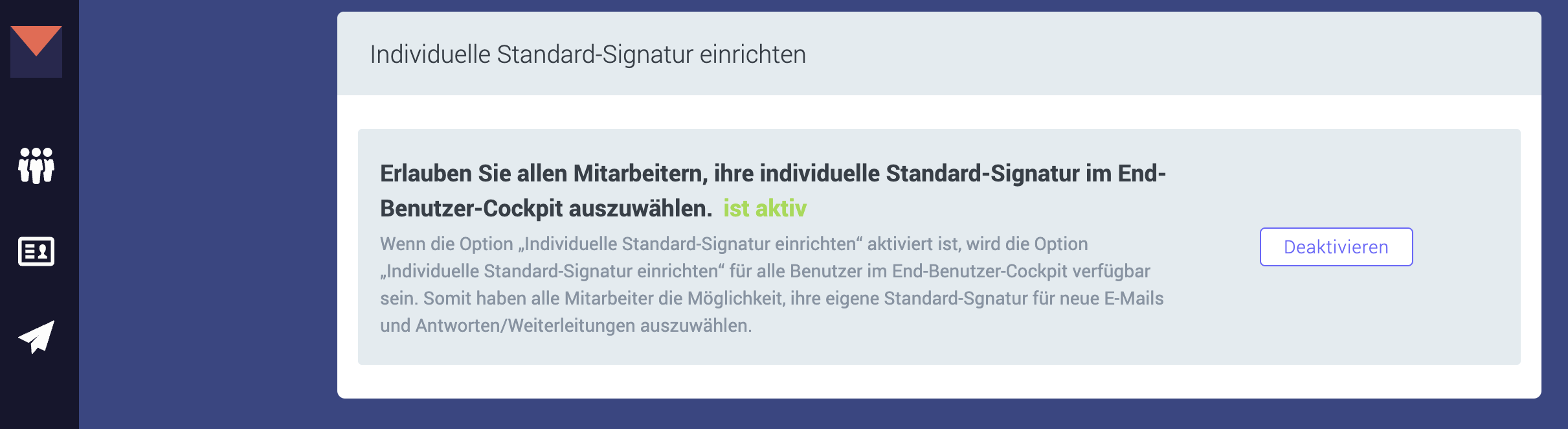 Anschließend können Endnutzer im Endbenutzer-Cockpit eine individuelle Standard-Signatur einrichten.