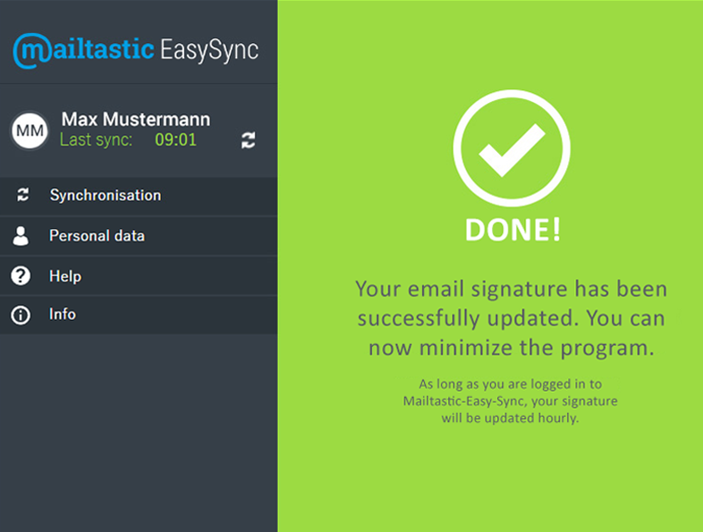 Via EasySync the employee can synchronize his or her signatures manually or update his or her personal data at any time (if approved by the admin).
