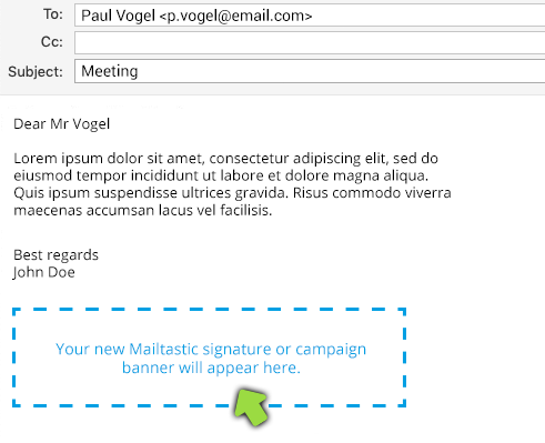 Done! Your Mailtastic signature or campaign banner will now be displayed in your e-mails.