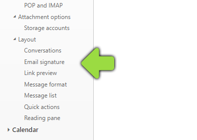 ... and then select "E-mail signature" in the left column.
