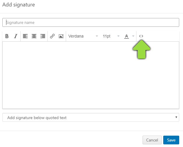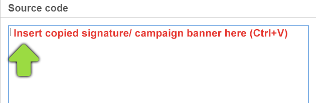 Paste the copied signature / campaign banner into the input field (Ctrl+V), confirm with "OK" and save the signature.
