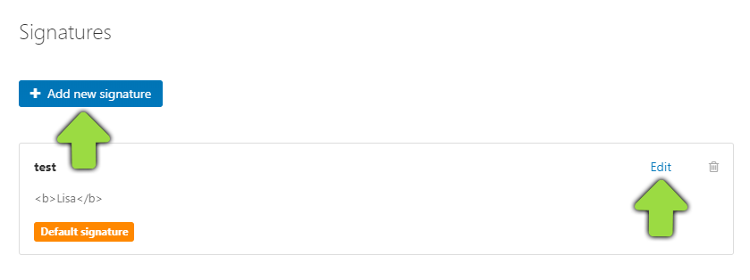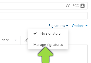 Select the menu item "Signatures" and click on "Manage signatures".